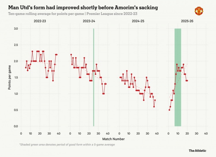 随着赛季深入,这毛病确实好多了,场均后场丢球权降到了3.3次。一方面是球员更熟了,另一方面也是战术变得更直接。曼联减少了让对手高位逼抢得手的机会,放弃了磨叽的传控,选择更干脆的向前。